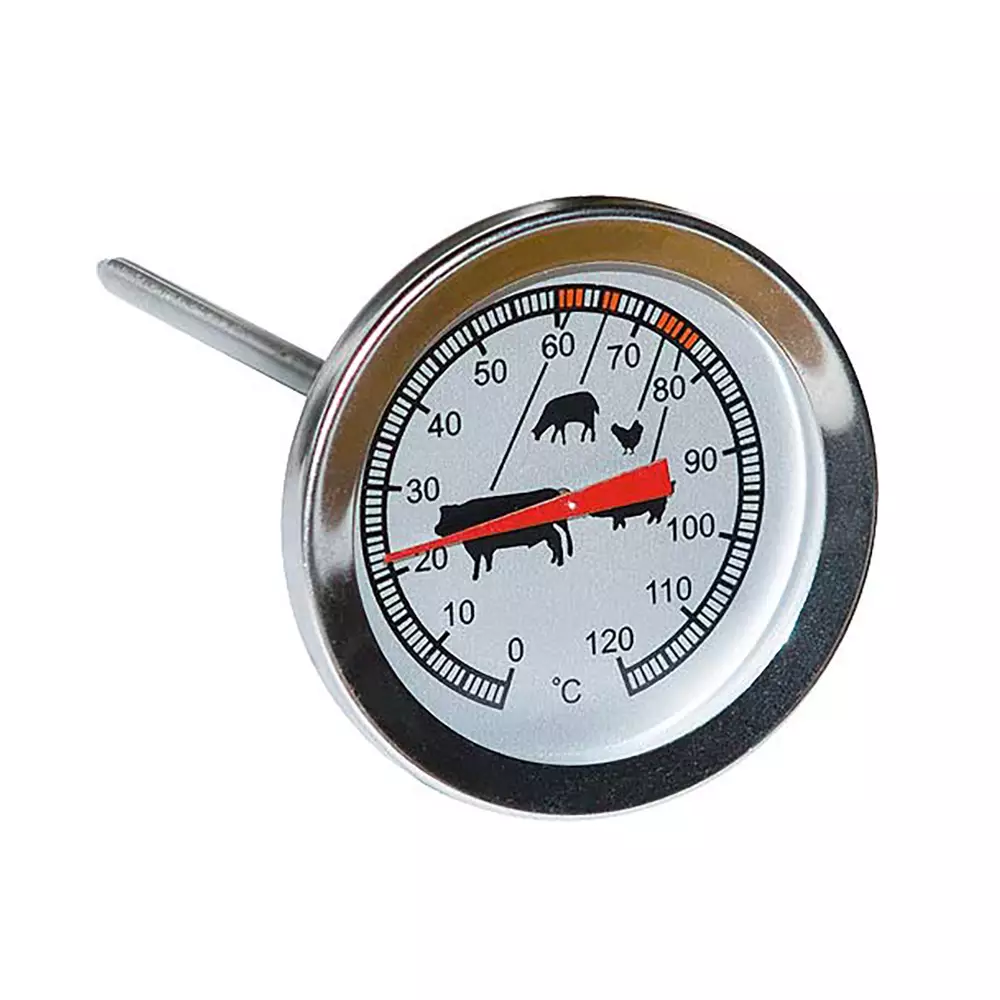 Paistilämpömittari lihan sisälämmön mittaukseen. Taulun halkaisija 50 mm, anturin pituus 90 mm. Mittausalue 0 - +120°C.