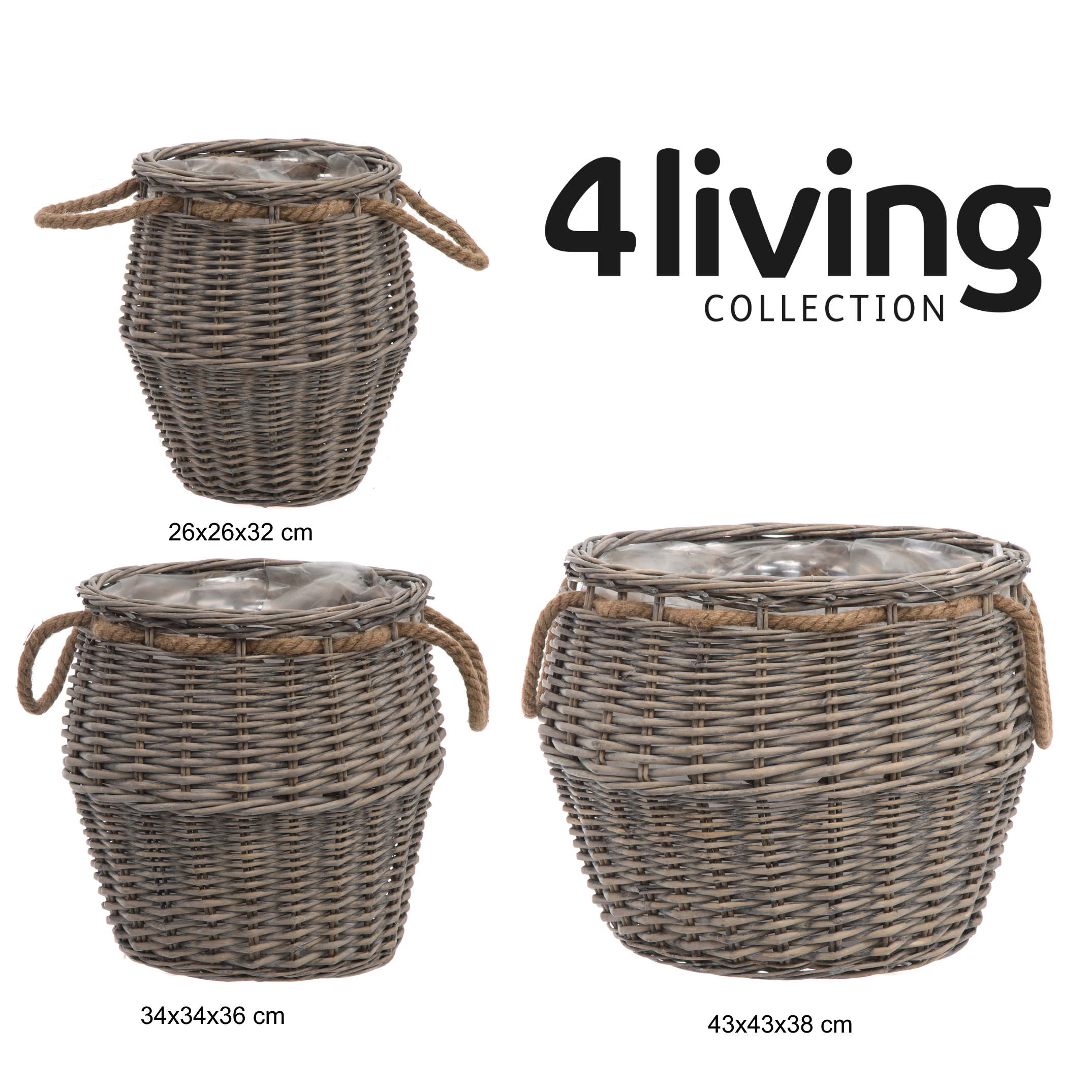 1 kpl 4Living Pajukori Juuttikahvoilla pyöreä 34x34x36 cm