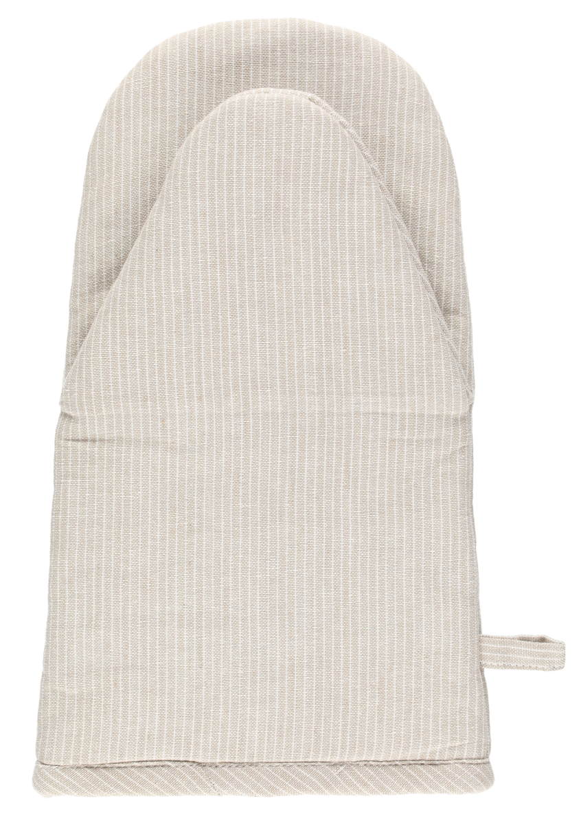 Raidallinen patakinnas. Väri beige, ohuet valkoiset raidat. Koko 18 x 30 cm. Materiaali 100 % puuvilla, täyte 350gsm polyesteri. Vesipesu 30 astetta.