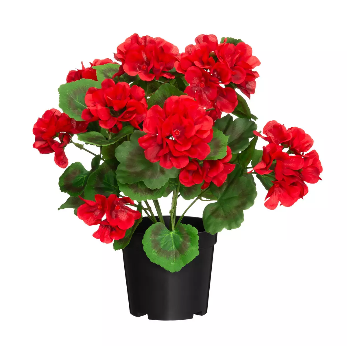 Pelargonia ruukussa 33 cm punainen UV-suojattu tekokasvi ruukussa