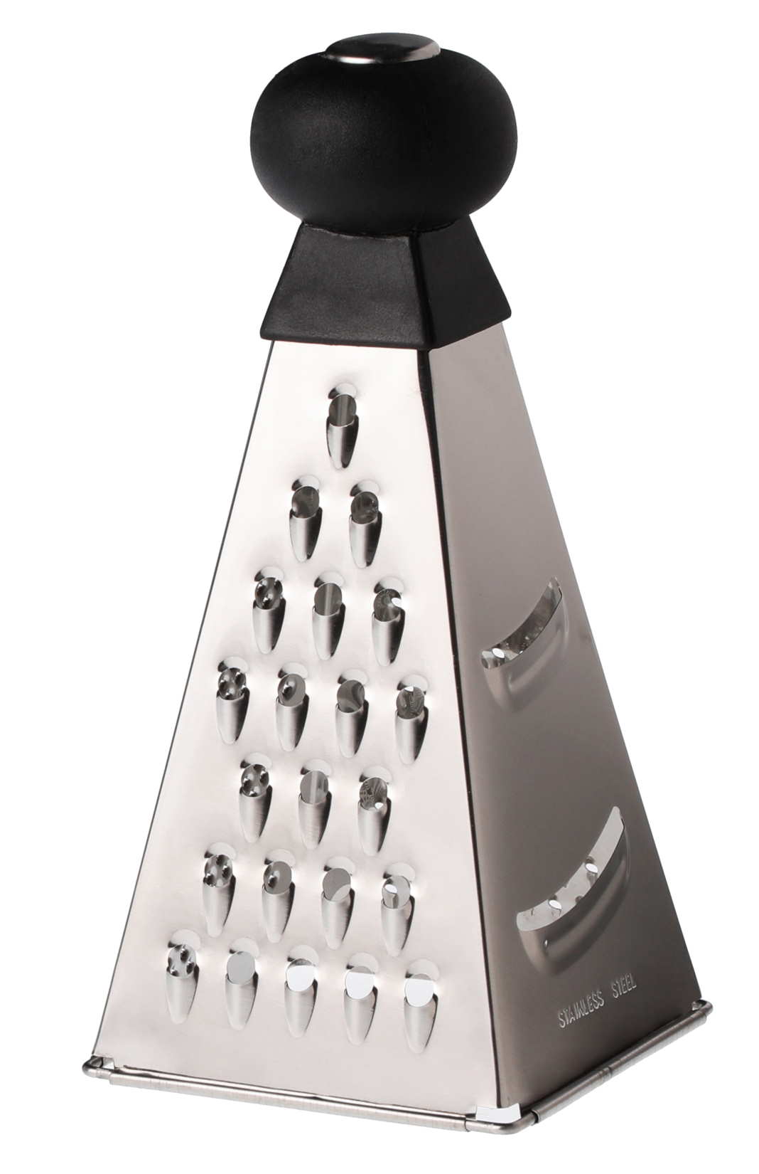 Neljällä erilaisella raastinpinnalla varustettu raastin esimerkiksi juuresten tms raastamiseen. Valmistettu ruostumattomasta teräksestä. Kätevä nuppi mitä pitää kiinni raastamisen aikana. 9,50 x 9,50 x 20,00 cm