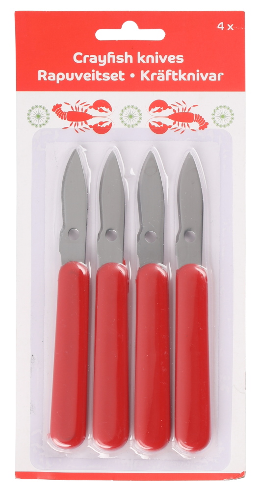 Lyhyt ja tukeva terä, jolla ravun kuoret saa helposti avattua.