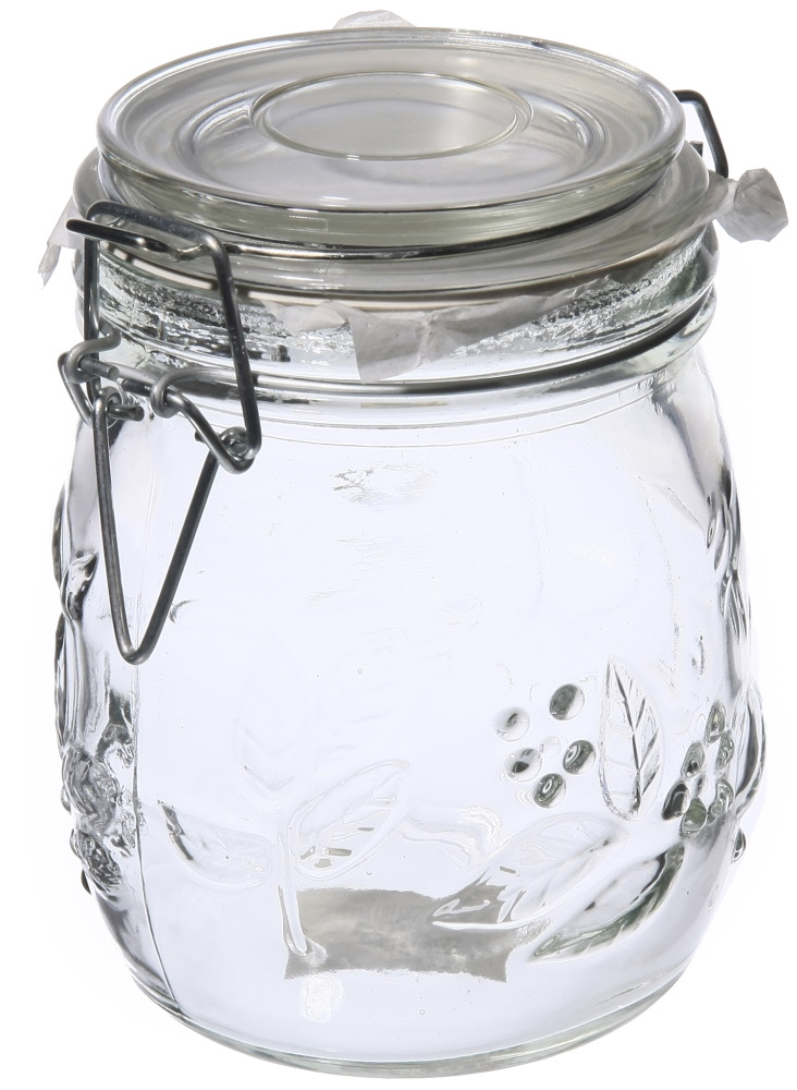 Patenttikannessa on silikonitiiviste ja purkki on koristeltu kohokuvioin.