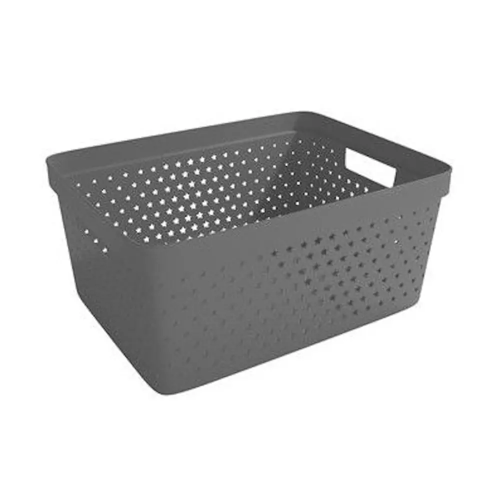 Star Basket säilytyslaatikko on täydellinen kylpyhuoneessa oleville pyyhkeille, isommille leluille lastenhuoneessa tai rukkasille ja pipoille eteisessä. Käytännöllinen A4-muoto. Käytä sitä mukavana sanomalehtikorina tai miksi ei lastenhuoneen värityskirjoihin? Mitat: 358x271x160mm. Valmistettu PP. BPA-vapaa. Elintarvikekäyttöön.