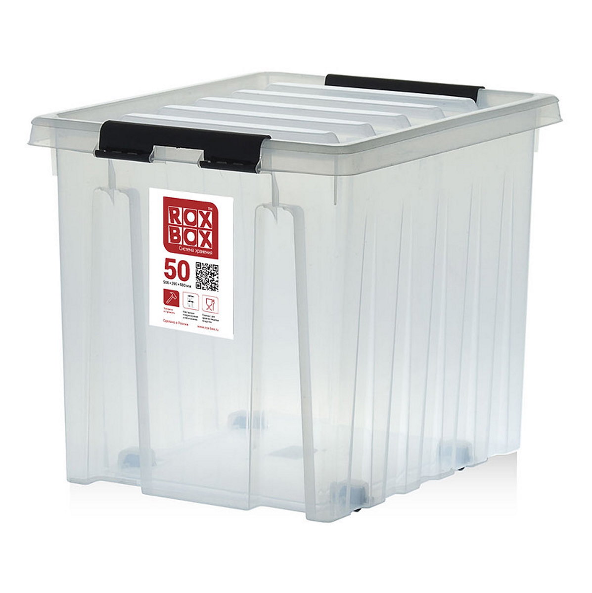 SÄILYTYSLAATIKKO 50L 390 x 390 x 500mm Kirkas kannellinen muovilaatikko Kannellinen muovilaatikko säilytykseen