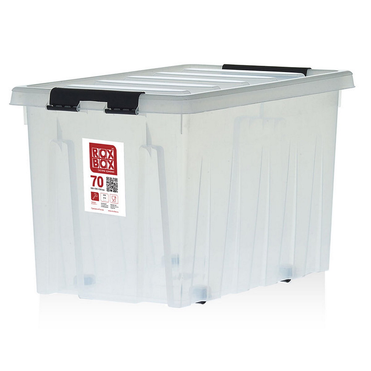 SÄILYTYSLAATIKKO 70L 350 x 390 x 580mm Kirkas kannellinen muovilaatikko Kannellinen muovilaatikko säilytykseen