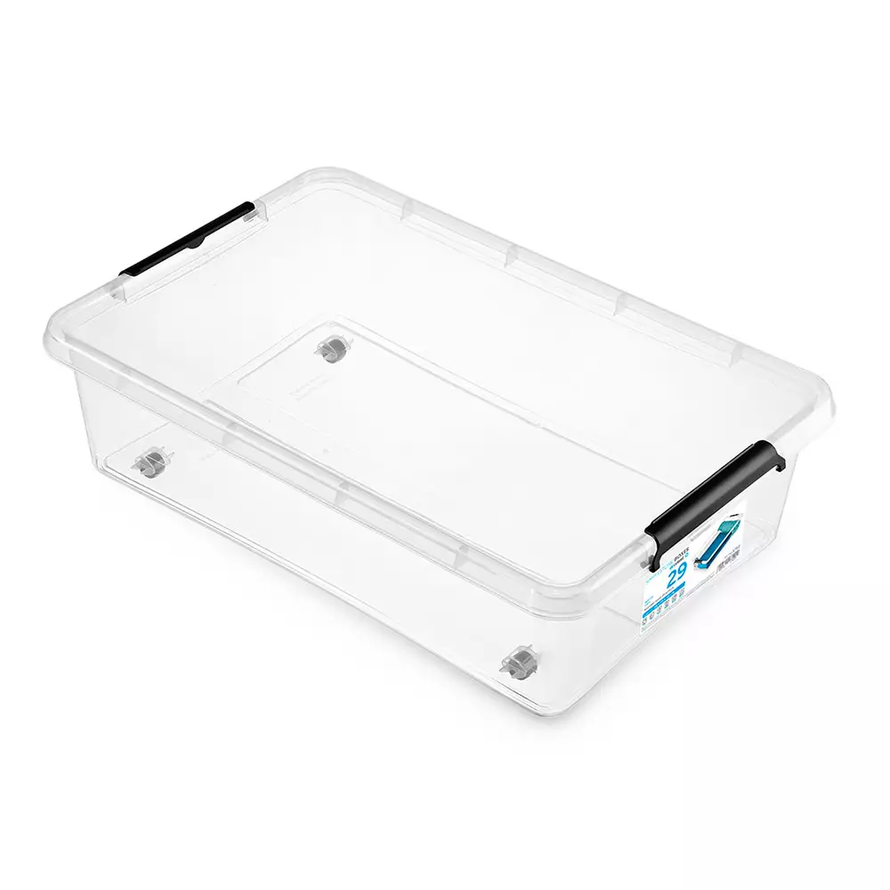 Matala ja tilava SimpleStore sängynaluslaatikko on erinomainen ratkaisu sängyn alle tai muihin mataliin säilytystiloihin. Läpinäkyvä materiaali helpottaa sisällön tunnistamista ilman kannen avaamista. Käytännölliset pyörät tekevät laatikon vetämisestä ja siirtämisestä sujuvaa. Kansi sulkeutuu tukevilla klipsilukoilla, jotka pitävät tavarat suojassa pölyltä. Pinottava rakenne auttaa hyödyntämään tilan tehokkaasti.