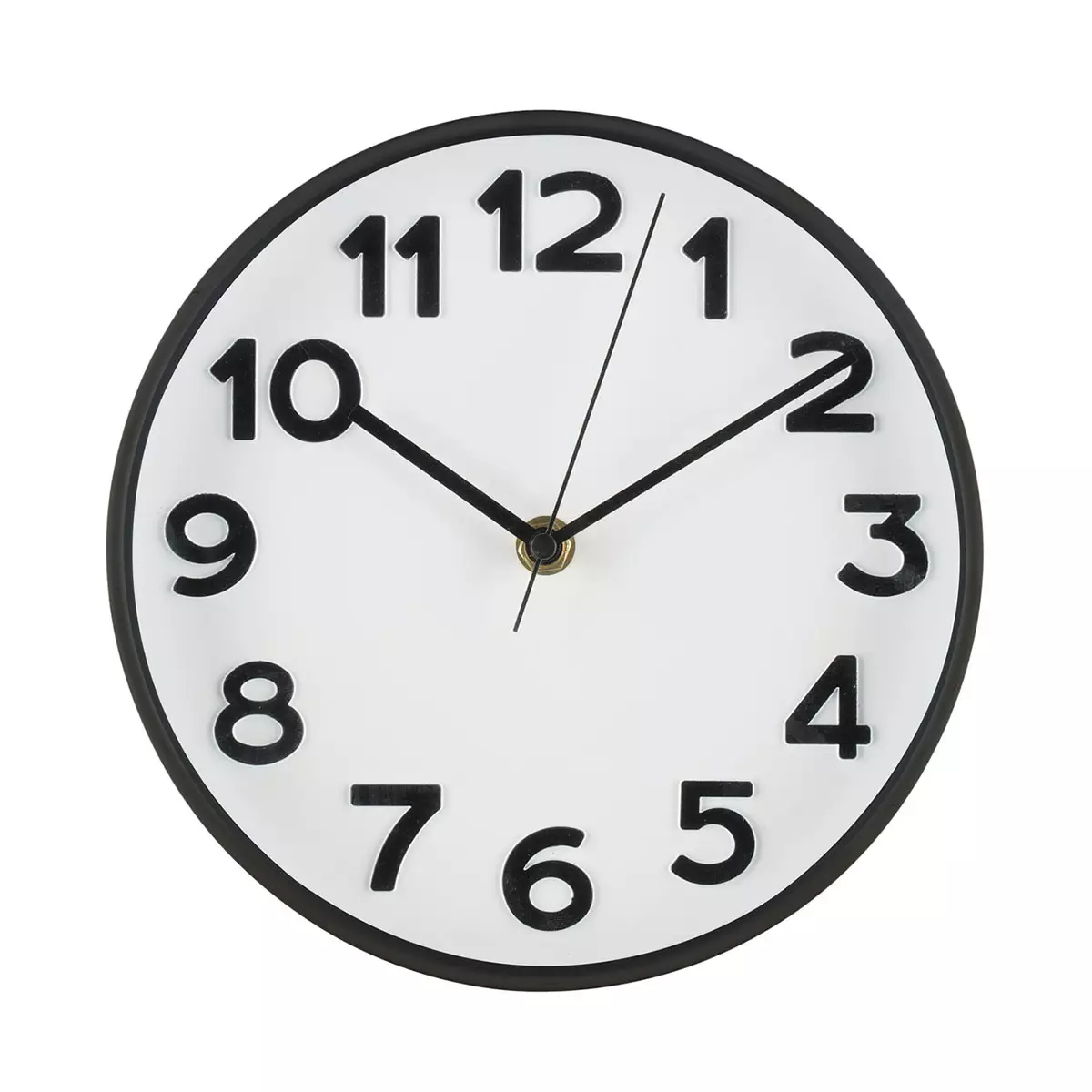 Mutkattoman tyylikäs seinäkello valkoisella kellotaululla, mustalla muovikehyksellä ja selkeillä numeroilla. Täydellinen toimistoon tai kodin seinälle. Paristot 1 x AA 1,5V (ei sisälly).