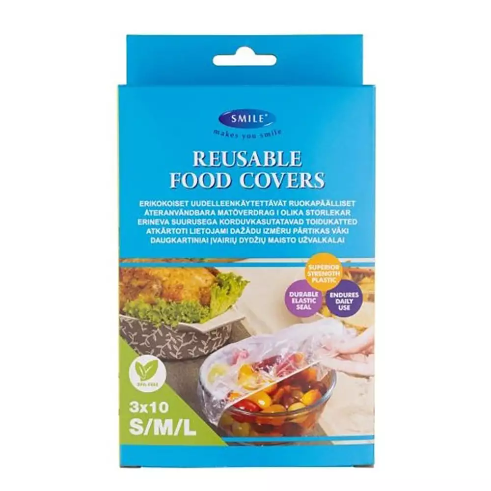 Kätevät ja joustavat kelmuhuput helpottavat ruoan säilytystä. Pyöreät huput sujahtavat vaivattomasti erikokoisten kulhojen ja lautasten päälle kuminauhareunuksen ansiosta. Ne toimivat kätevänä vaihtoehtona perinteiselle kelmulle ja auttavat pitämään ruoan tuoreena.