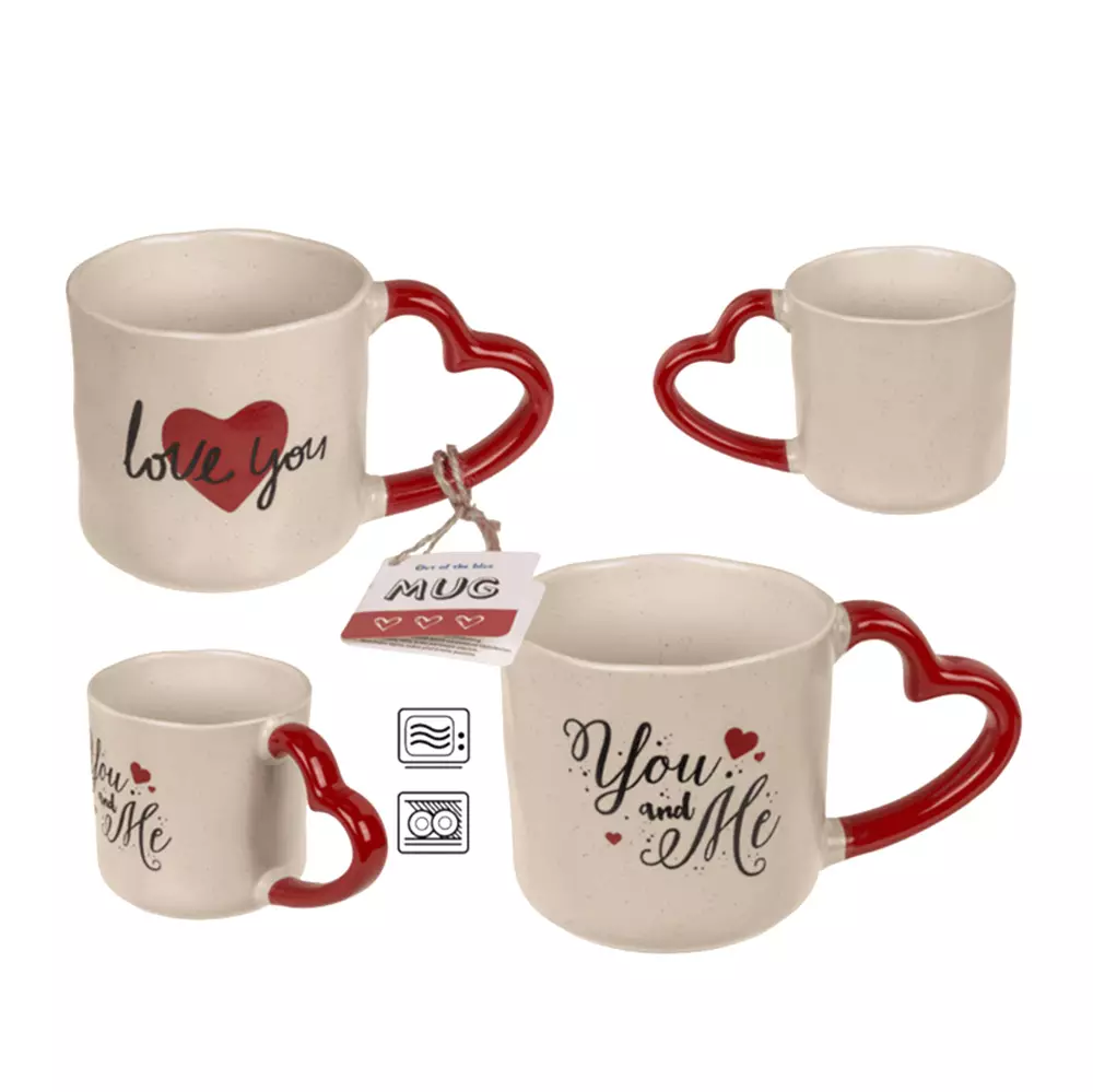 Romanttinen sydänmuki arkeen ja lahjaksi. Keraaminen muki, jossa sydämen muotoinen kahva ja lämminhenkinen teksti, sopii kahville, teelle tai kaakaolle. Ajaton vaalea sävy ja punainen sydänkahva tekevät mukista katseenvangitsijan.