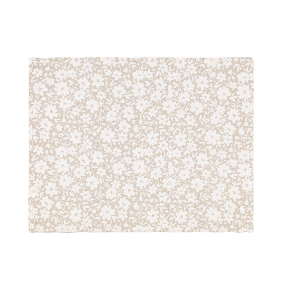 Kangastabletti, jossa toinen puoli kukallisella printtikuosilla ja toinen puoli yksivärinen beige. Pöytätableteilla saat kotiisi hetkessä uuden ilmeen ja luot helposti vaihtelua kattaukseen. Pöytätabletit myös suojaavat pöydän pintaa roiskeilta ja naarmuilta. Koko 35 x 45 cm. Materiaali 100 % puuvilla. Pesu 30 asteessa.