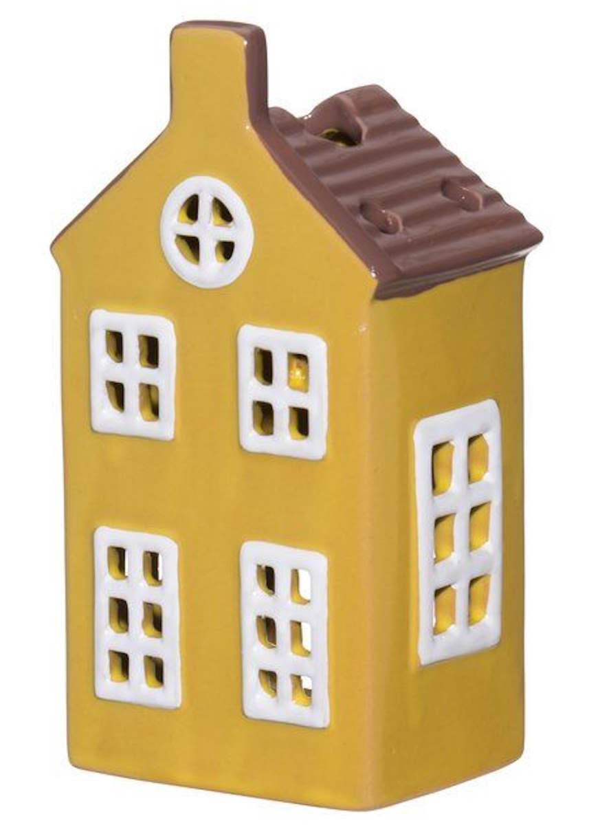 Talolyhty Copenhagen 15 cm keltainen Hurmaava talon muotoinen lyhty