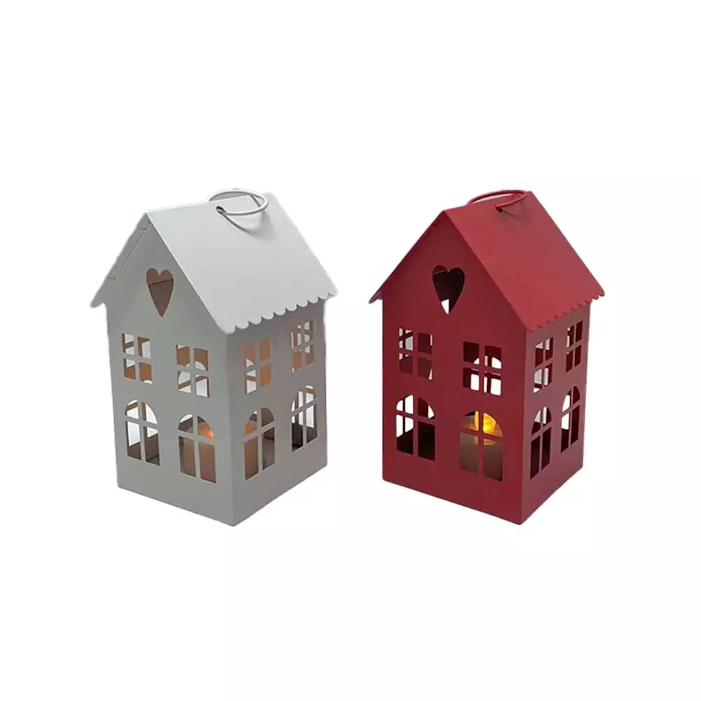 Kaunis metallinen talolyhty tuo tunnelmaa sisustukseen ja valaisee pehmeästi tuikun valolla. Lyhdyn talomainen muoto ja sydänaukot kattorakenteessa luovat lämpimän ja kodikkaan ilmeen, joka sopii täydellisesti talvikauden ja joulun sisustukseen.