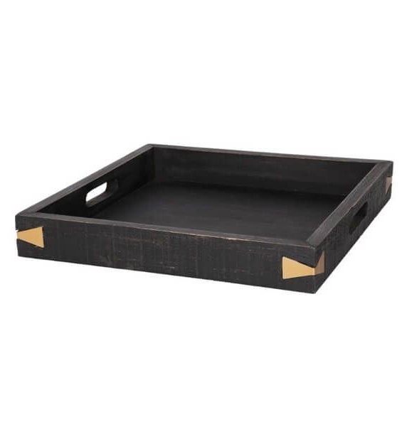Tarjotin Roots 42x42x6cm 4Living Musta tarjotin korkeilla reunoilla