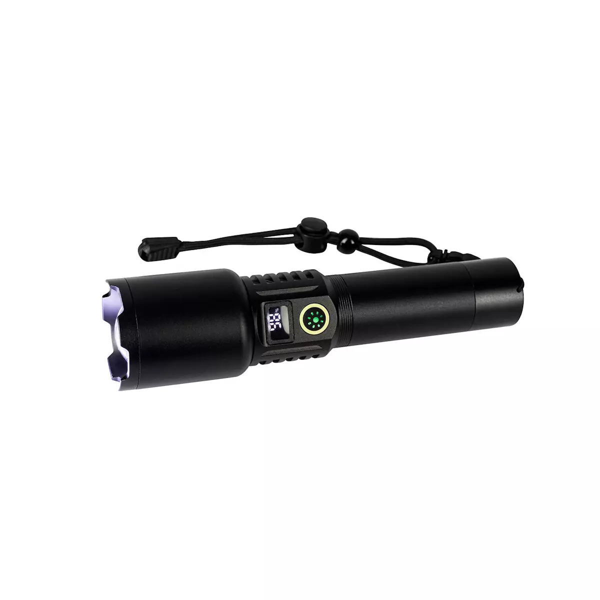 Tehokas taskulamppu zoomilla ja eri valaistustilavaihtoehdoilla. Tässä taskulampussa on 2000 lumenin valoteho. Se tarjoaa erinomaisen kirkkauden ja monipuoliset valotoiminnot: kirkas, keskitaso, himmeä, vilkku ja SOS. Zoom-toiminto takaa tarkennettavan valaistuksen, ja akun varaustilan näyttö pitää sinut ajan tasalla akun kestosta. Valaisimessa on 3 tunnin toiminta-aika kirkkaimmalla tilalla. 2600 mAh Li-ion-akku latautuu nopeasti USB-C-latauksella, jotta valonlähde on aina valmis käyttöön!
