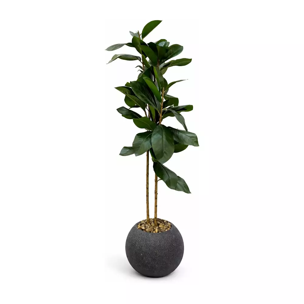 Tämä näyttävä tekokasvi tuo vihreyttä ja korkeutta sisustukseen. Suuret lehdet ja luonnollinen muoto tekevät muovikukasta aidon näköisen sisustuselementin. Tekokukka sopii hyvin lattialle esimerkiksi olohuoneeseen, toimistoon tai aulatilaan. Valmiiksi ruukkuun aseteltu tekokasvi on helppo sijoittaa suoraan käyttöön.