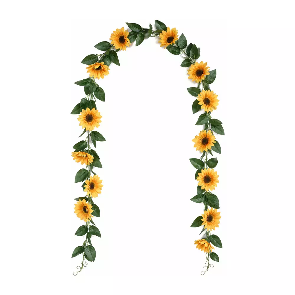 - Auringonkukilla koristeltu tekokukkaköynnös