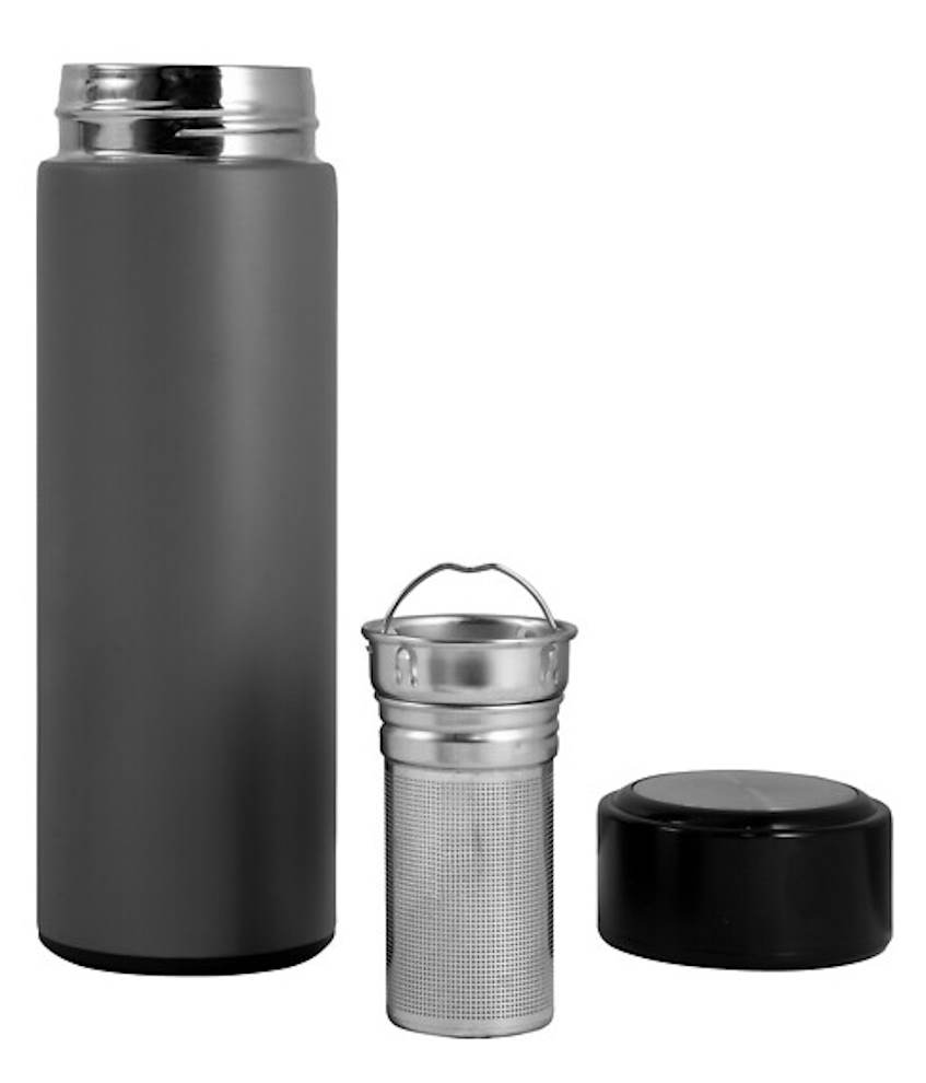 Ikioma terästermos teen ystävälle sisältää reilunkokoisen siivilän. Ulkomuodoltaan tämä mattaharmaa terästermosmuki on niin tyylikäs, että kahvia hörppivä kaveri kalpenee kateudesta ja vaihtaa teehen kohta hänkin!