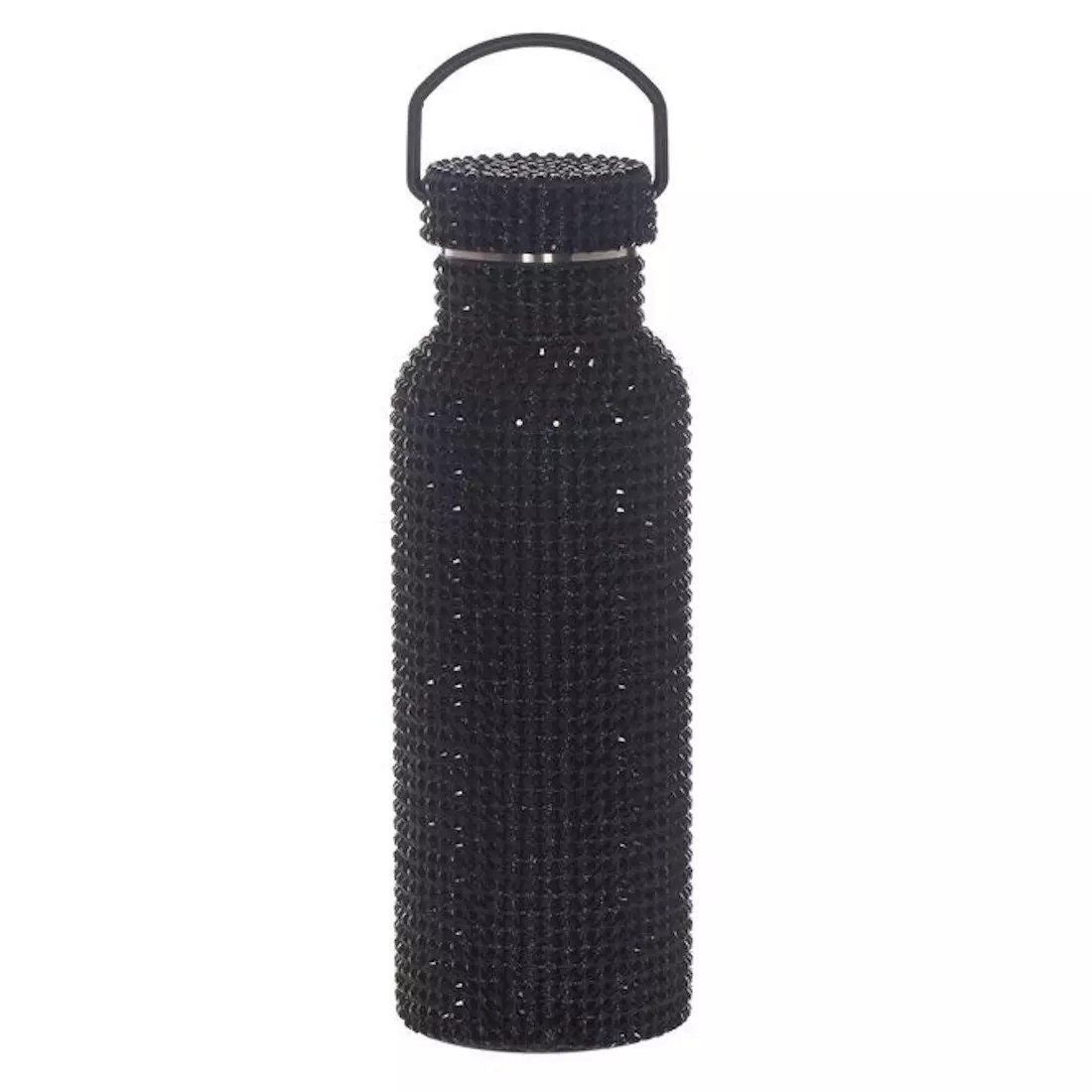 Rohkeasti bling ja upea! Näyttävä musta termospullo on koristettu kauttaaltaan pienillä timanteilla. Pitää juoman kylmänä taikka kuumana pidempään. Lämmöneristävyys 5 tuntia. Vetoisuus 500 ml. Käsinpesu.