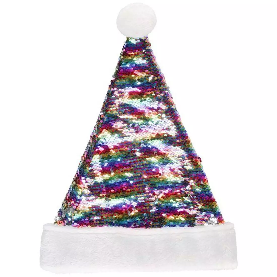 Säihkettä jouluun. Värikkäillä paljeteilla koristettu tonttulakki. Ympärysmitta 65 cm. Materiaali polyesteri. Vesipesu kielletty.