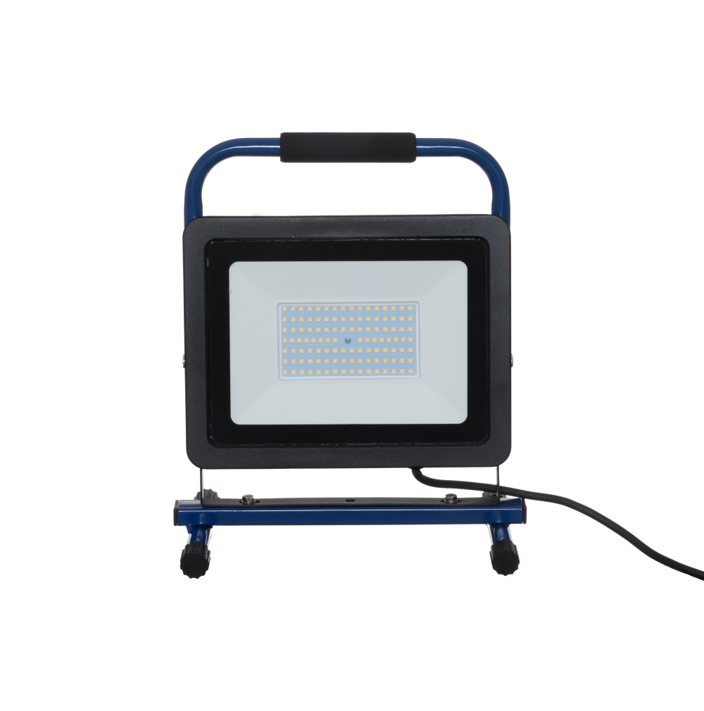 Kestävä ja tehokas siirrettävä työvalaisin. Valaisukulma säädettävissä, pehmustettu kantokahva.