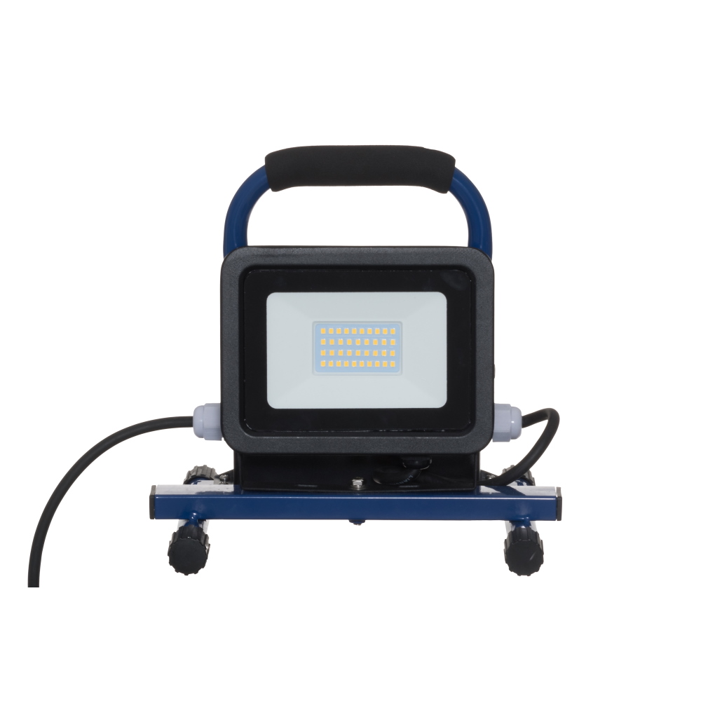 Kestävä ja tehokas siirrettävä työvalaisin. Kaksi maadoitettua pistorasiaa. Valaisukulma säädettävissä, pehmustettu kantokahva.