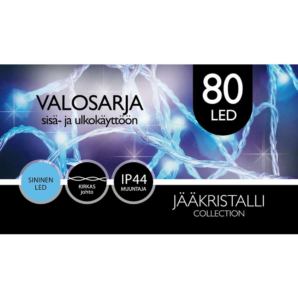 Kirkkaan sininen led-valosarja jonka voit sijoittaa sisälle tai ulos. Kirkkaalla johdolla varustettu.