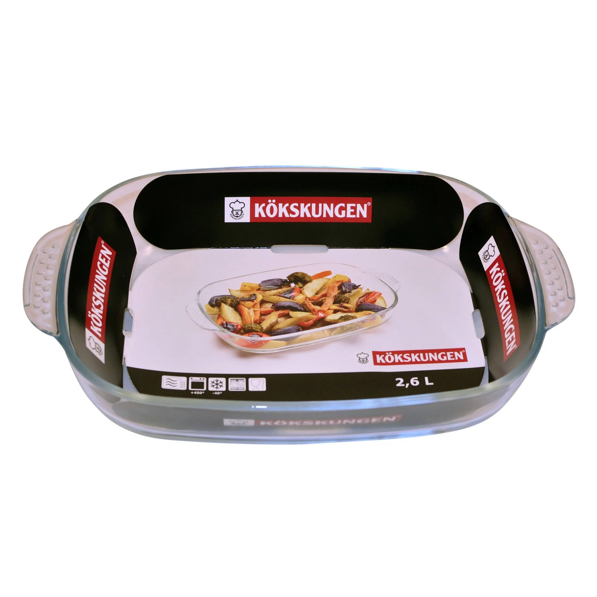 Monikäyttöinen,iskunkestävä lasivuoka joka kestää isotkin lämmönvaihtelut ja on tyylikäs myös kattauksessa. Konepesunkestävä.