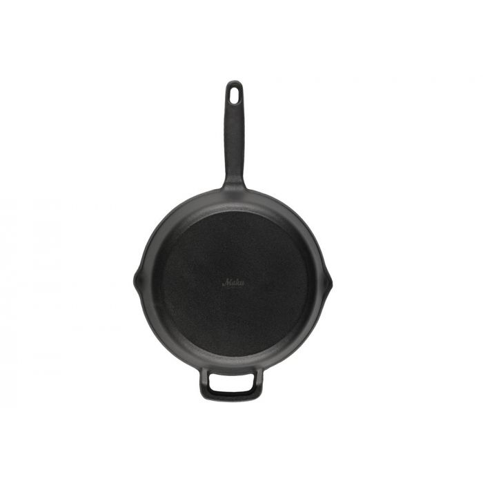 Maku-sarjan tukeva mattaemaloitu valurautapannu, jossa on kaatonokka. Paistinpannussa on kaksi kahvaa käsittelyn helpottamiseksi.