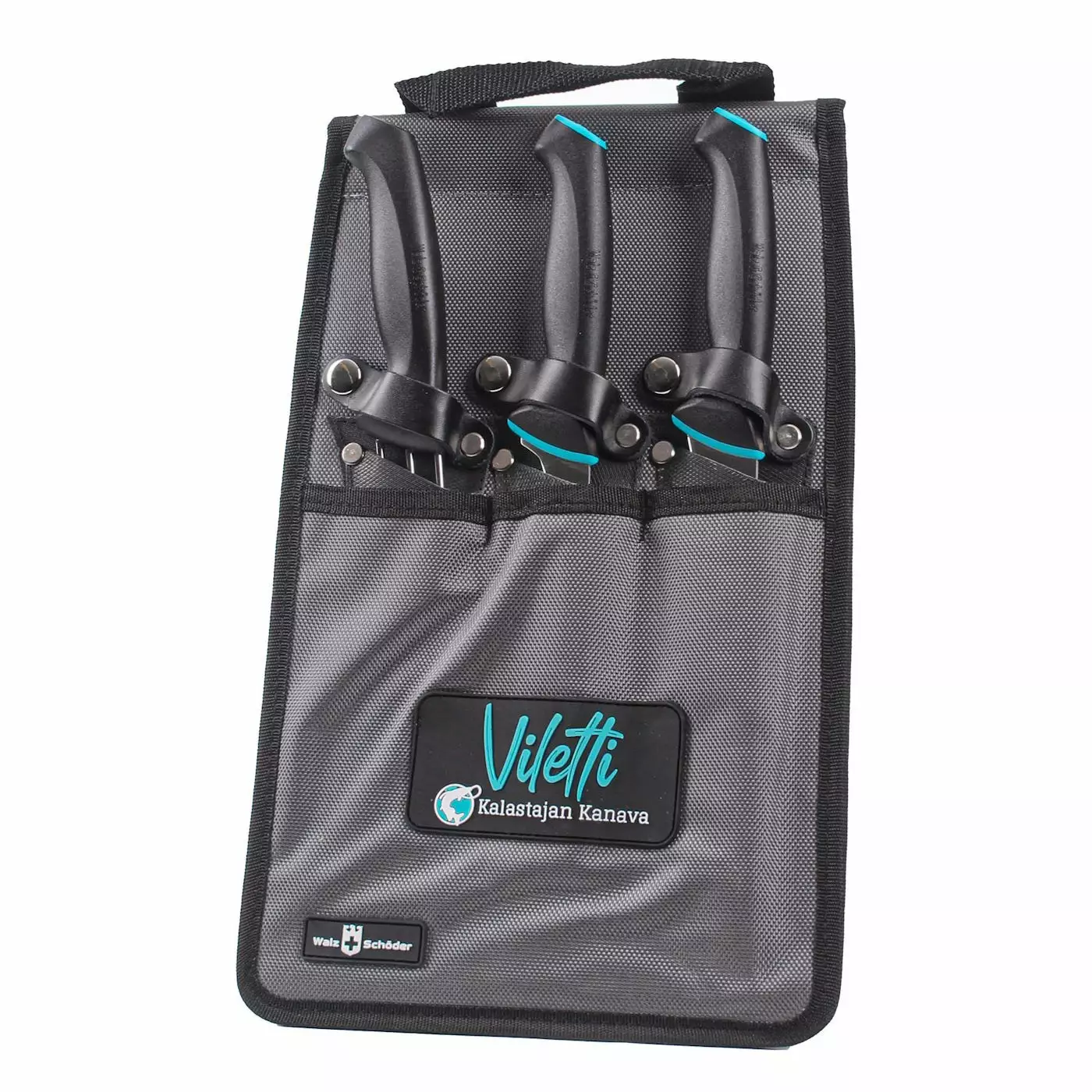 Viletti – veitsisarja on kaikille kalan käsittelijöille erinomainen valinta. Viletti sarjassa on tukeva kalapiikki, fileveitsi ahvenelle ja kuhalle, sekä hauelle oma fileveitsi. Molemmissa veitsissä sekä kalapiikissä on miellyttävä TPR-kahva, joka takaa hyvän otteen.