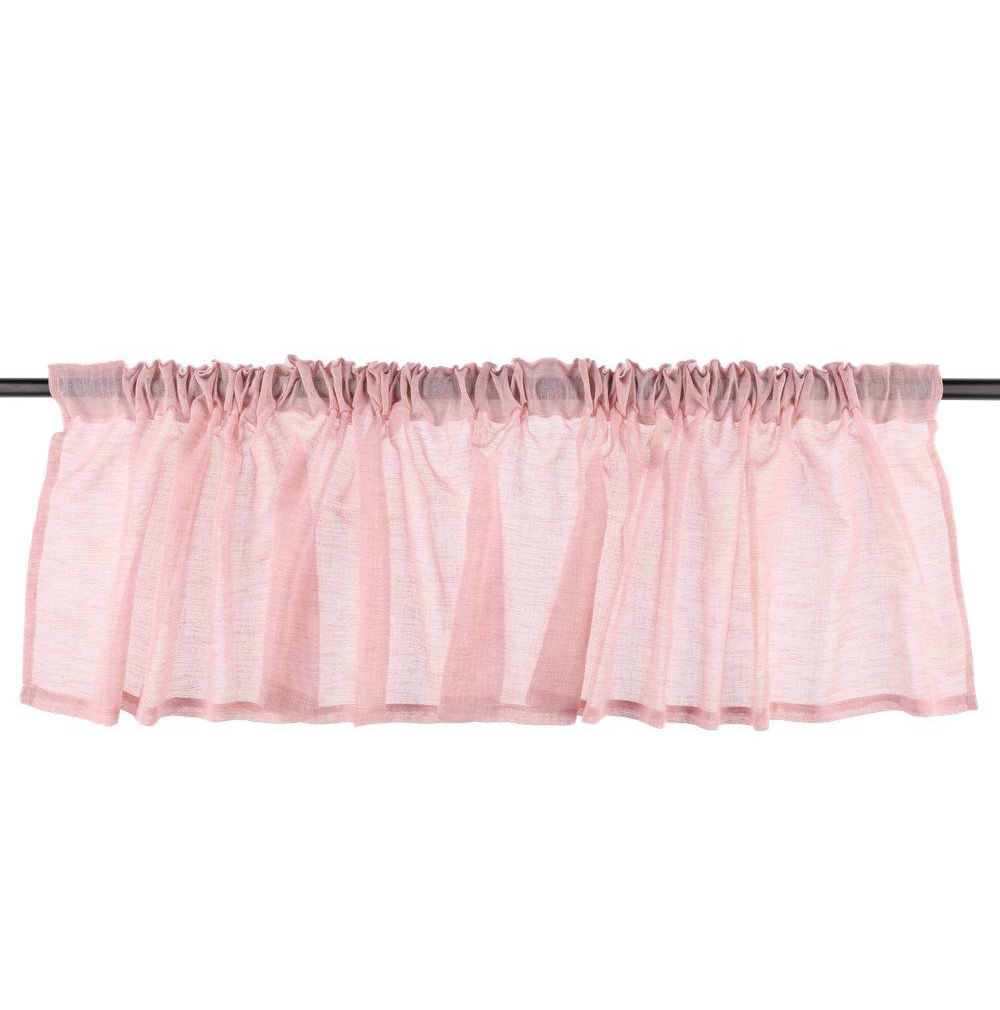 Oliver verhokappa on eläväpintaista ja läpikuultavaa pellava-look materiaalia. Koko 45 x 240 cm. Väri vaaleanpunainen. Materiaali 100% polyesteri. Pesu 30 asteessa.