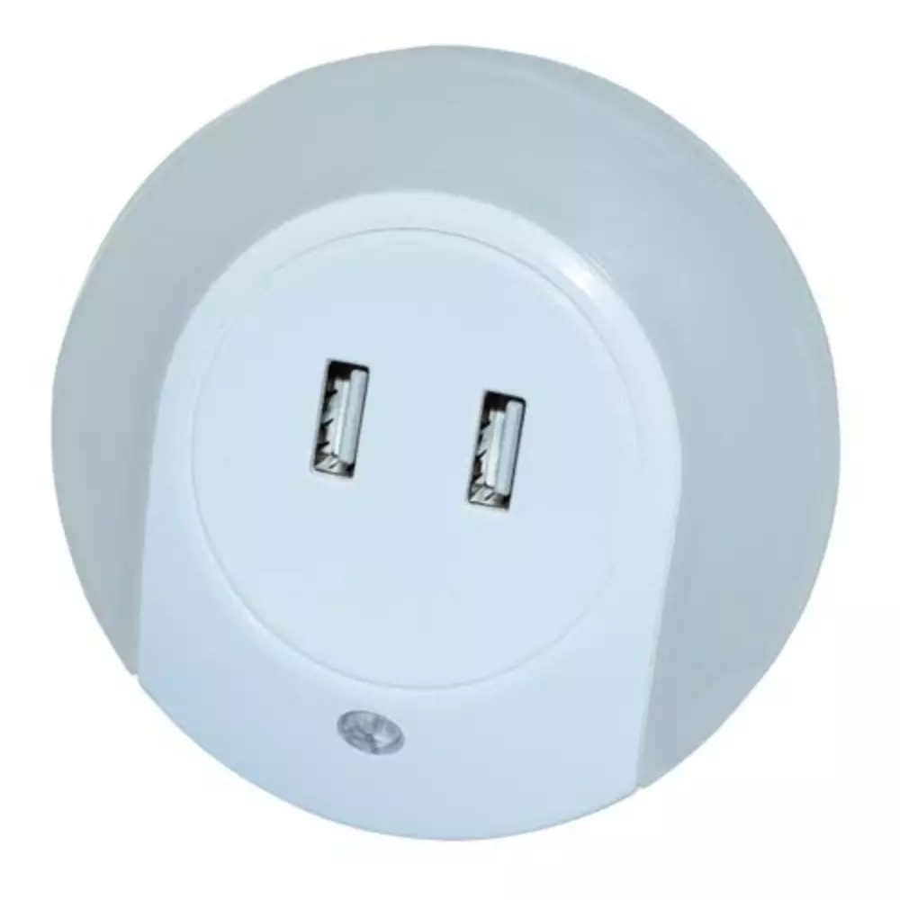 LED-yövalo hämäräkytkimellä ja kahdella USB-latauspistokkeella varustettuna. Yövalossa on/off -kytkin. Auto-asennossa yövalo syttyy automaattisesti hämärässä ja sammuu kun tulee valoisaa. Asennus suoraan pistorasiaan. USB ulostulo 5 V 2.1 A. Jännite 220 – 240 V 50 Hz. Teho 0,4 W (7 kpl led).