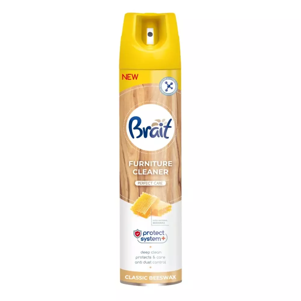 Brait Classic Beeswax huonekalukiillotin puhdistaa ja hoitaa puupintoja tehokkaasti sekä palauttaa niiden luonnollisen kiillon. Mehiläisvahaa sisältävä koostumus auttaa suojaamaan pintoja kulumiselta ja tekee niistä siistin ja viimeistellyn näköiset. Kiillotin vähentää pölyntarttumista ja jättää pinnat raikkaan tuoksuisiksi. Sopii erilaisten puu- ja viilupintojen säännölliseen hoitoon kotona.