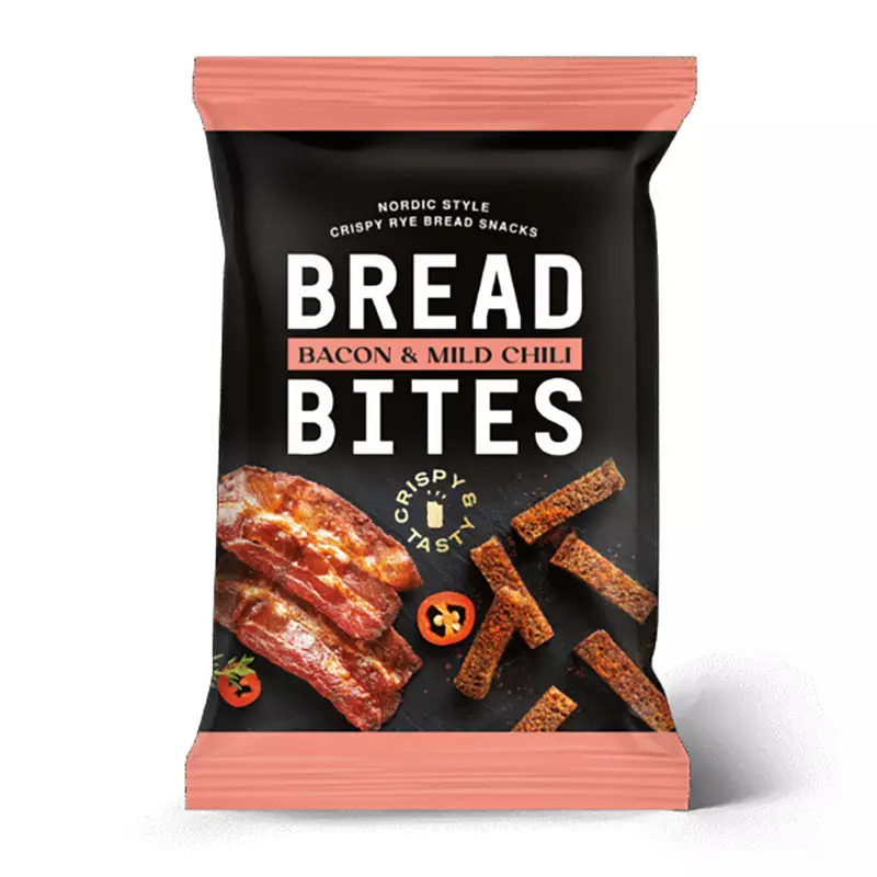 Bread Bites Bacon & Mild Chili -leipätikut ovat rapea ja täyteläisesti maustettu naposteltava, jossa rukiinen leipäpohja yhdistyy pekonin makuun ja miedon chilin hienovaraiseen potkuun. Tikkujen rouhea rakenne tekee niistä sopivia sellaisenaan nautittavaksi tai tarjottavaksi esimerkiksi erilaisten kastikkeiden ja dippien kanssa. Leipätikut valmistetaan leivästä, jonka osuus tuotteesta on 69 prosenttia. Mausteinen mutta tasapainoinen makuprofiili tuo tuotteeseen reilua ja selkeää luonnetta.