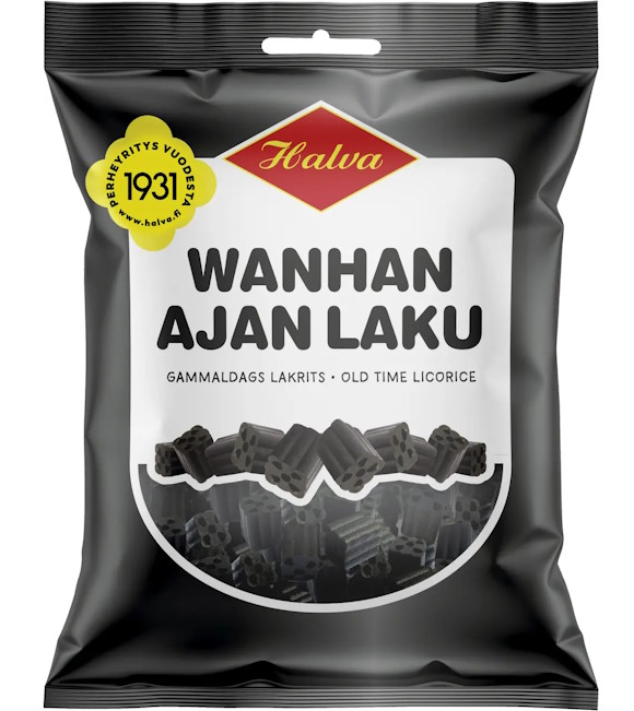 Halva vanhan ajan laku 330g on perinteisellä lakritsinkeittomenetelmällä valmistettu pehmeä Halvan maukas lakritsi. Valmistettu Pitäjänmäessä, Helsingissä.