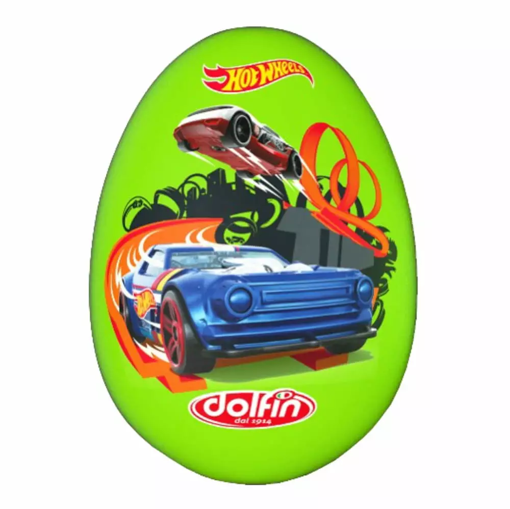 Hot Wheels -yllätyssuklaamuna on iso ja näyttävä suklaaherkku, joka yhdistää herkullisen maitosuklaan ja vauhdikkaan yllätyksen. Munan sisältä paljastuu Hot Wheels -aiheinen yllätys, joka ilahduttaa erityisesti autoista ja kilpa-ajosta innostuneita lapsia. Täydellinen lahja tai pääsiäisherkku pienille vauhtifaneille.