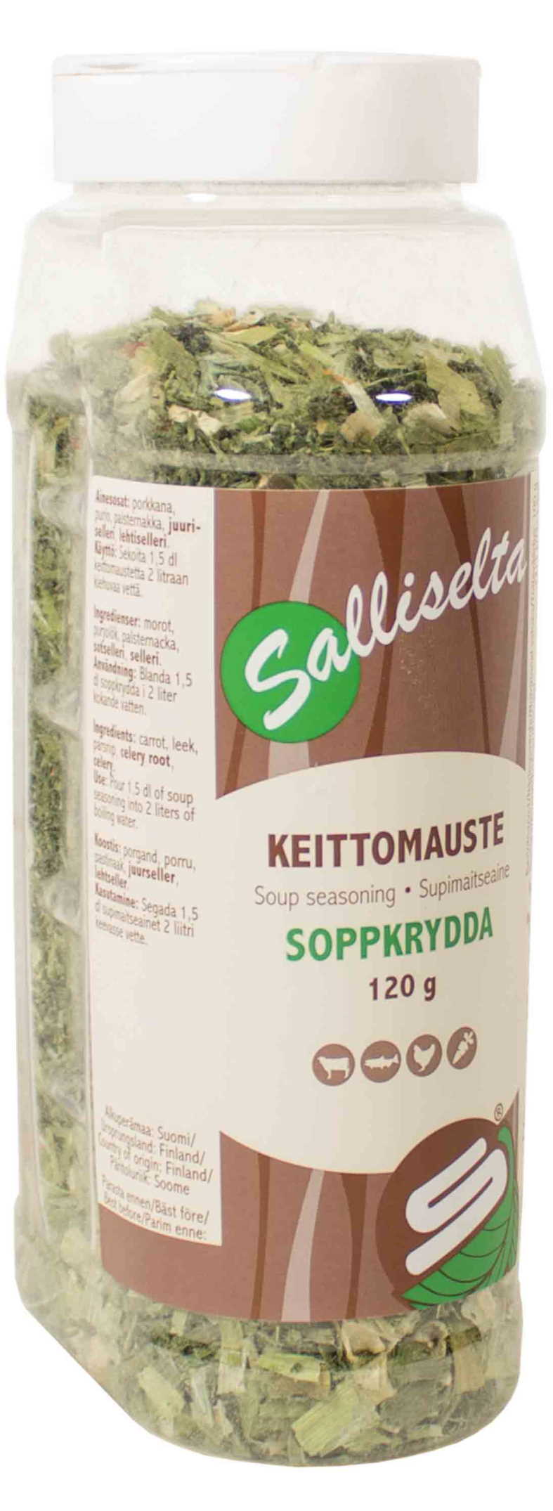 Sekoita n. 1 1/2 dl keittomaustetta 2 litraan kiehuvaa vettä. Anna kiehua hiljalleen 15 minuuttia. Lisää muut keittoainekset. Käytä myös patoihin.