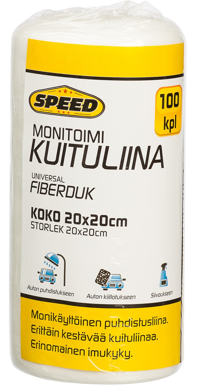 Monikäyttöinen kuituliina siivoukseen, autonhuoltoon jne. Arkin koko 20x20cm. Rullassa 100kpl.