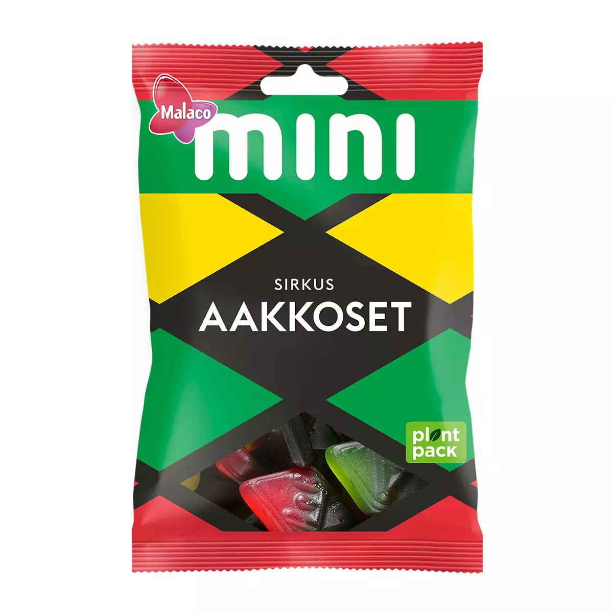 Aakkoset on koko kansan tuntema makeisklassikko, jonka tuttu timanttikuvio on lupaus mausta. Mini Aakkoset Sirkus -pussissa yhdistyvät herkullisesti salmiakki- ja hedelmäkarkkien maut värikkääksi sekoitukseksi. Mini-kokoinen karkkipussi sopii mainiosti omaan herkutteluun tai mukaan otettavaksi. Tuttujen Aakkosten pehmeä koostumus ja vaihtelevat maut tekevät jokaisesta kourallisesta nautinnon. Karkit on pakattu pussiin, joka on valmistettu 50 % kasvipohjaisesta muovista.