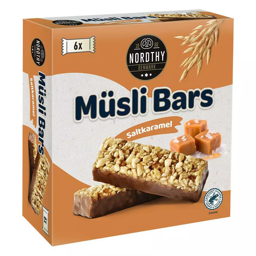 Nordthy Myslipatukat Suolainen Karamelli yhdistää rapean myslin, makean karamellin ja pehmeän maitosuklaan täydelliseksi välipalaksi. Patukoissa on herkullisia suolakaramellipaloja, jotka tuovat makuun sopivasti makeutta ja ripauksen suolaisuutta. Jokainen patukka on yksittäispakattu, joten ne sopivat täydellisesti mukaan arjen kiireisiin tai pieneen herkutteluhetkeen.