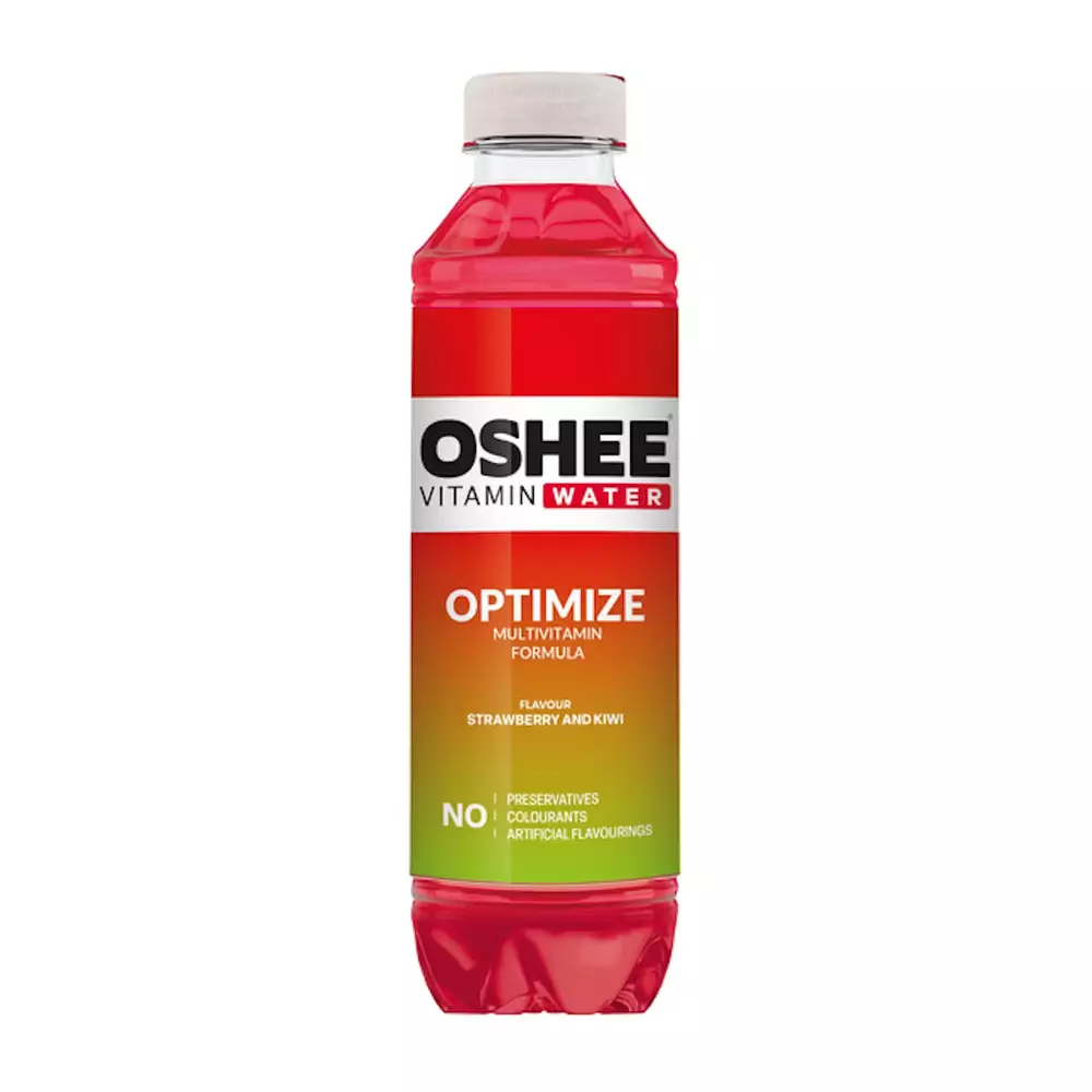 Oshee Vitamin Water Optimize on raikas mansikan ja kiivin makuinen vitamiinivesi, joka auttaa pitämään kehon nesteytettynä ja olon virkeänä päivän aikana.