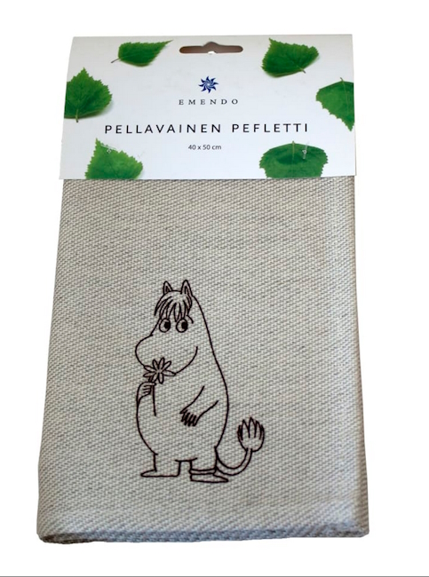 Kaunis ja kestävä Emendo pellava/puuvilla (60%/40%). Pellavatekstiilit imevät hyvin kosteutta ja hylkivät likaa sekä kestävät kovaa kulutusta ja toistuvaa pesua. Lajitelma, kuvana niiskuneiti tai muumipeikko. Toimitus varastosaatavuuden mukaan. Valmistusmaa Viro. Emendo Oy.