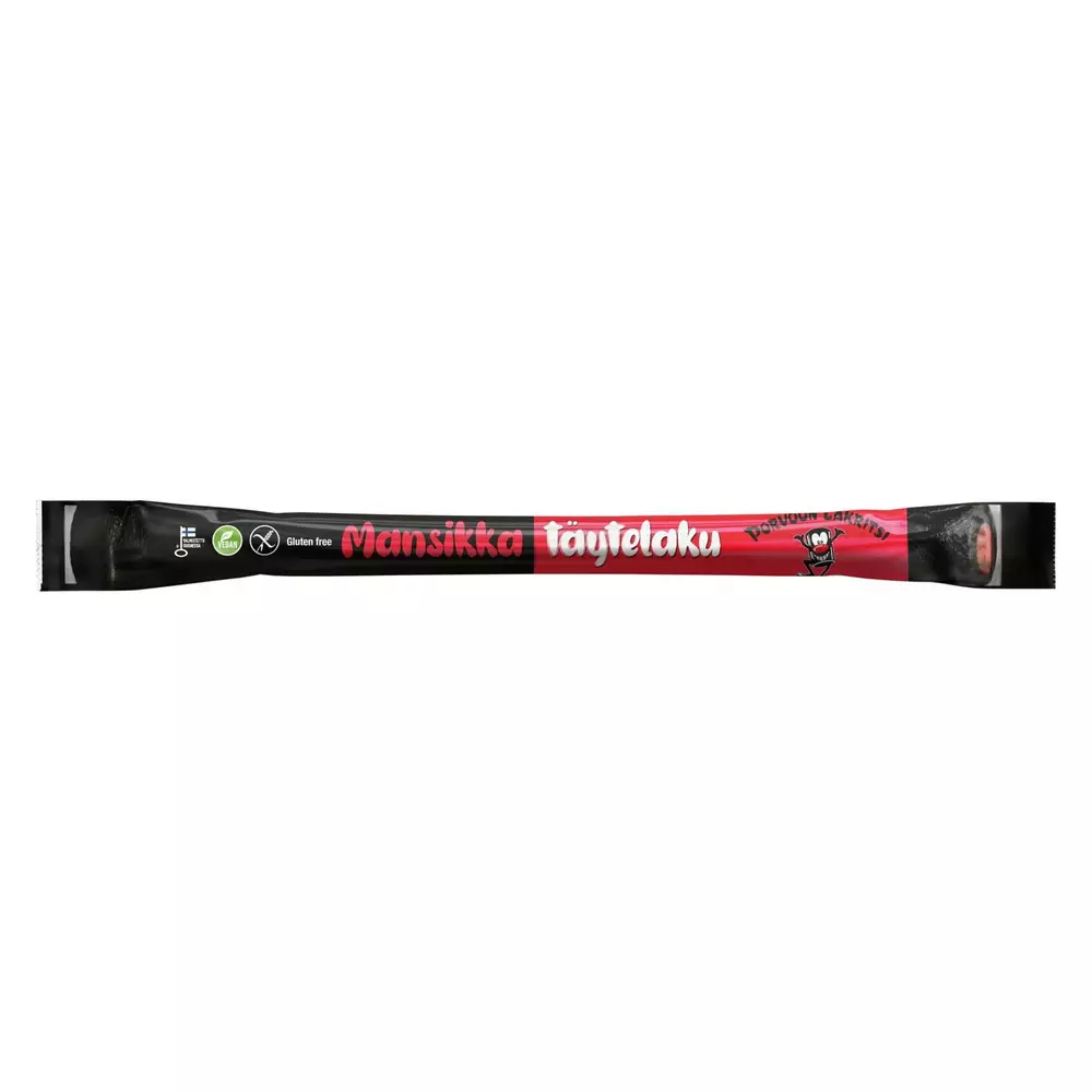 Gluteeniton metrilaku, jossa yhdistyvät lakritsin pehmeä rakenne ja mansikan makea maku. Täyteläinen lakritsi tarjoaa perinteisen herkkuhetken hieman erilaisella maulla. Noin 50 cm pitkä lakritsitanko on pakattu yksittäispakkaukseen, joten se sopii hyvin mukaan otettavaksi tai nautittavaksi sellaisenaan.