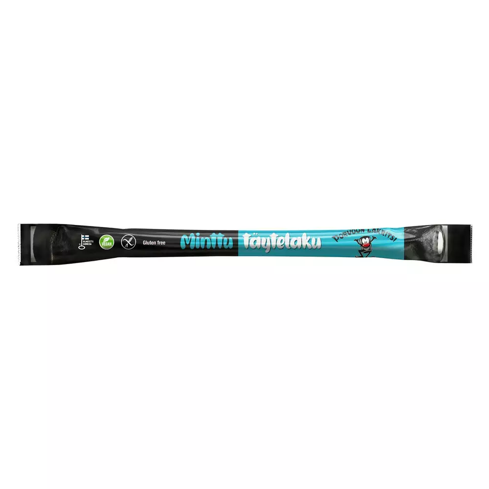 Gluteeniton metrilaku, jossa yhdistyvät lakritsin pehmeä rakenne ja mintun raikas maku. Täyteläinen lakritsi tarjoaa perinteisen herkkuhetken hieman erilaisella maulla. Noin 50 cm pitkä lakritsitanko on pakattu yksittäispakkaukseen, joten se sopii hyvin mukaan otettavaksi tai nautittavaksi sellaisenaan.