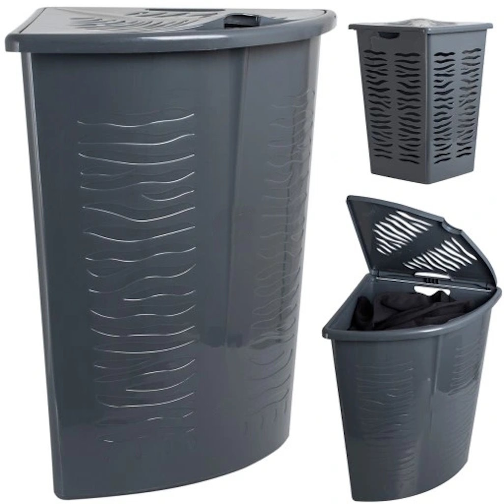 Kätevä kulmaan sopiva pyykkikori. Tilankäytöllisesti helppo sijoittaa ahtaaseenkin tilaan kulmaan.