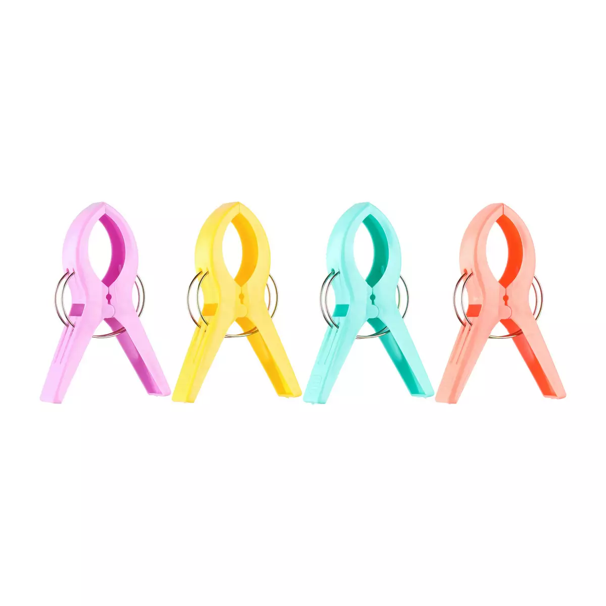 Kätevät klipsit rantapyyhkeiden ja lakanoiden kiinnittämiseen. Klipsien avulla pyyhe tai lakana pysyy paikallaan esimerkiksi rantatuolissa myös tuulisella säällä. Sopii hyvin rannalle, parvekkeelle tai puutarhaan. Pakkauksessa neljä eri väristä klipsiä.