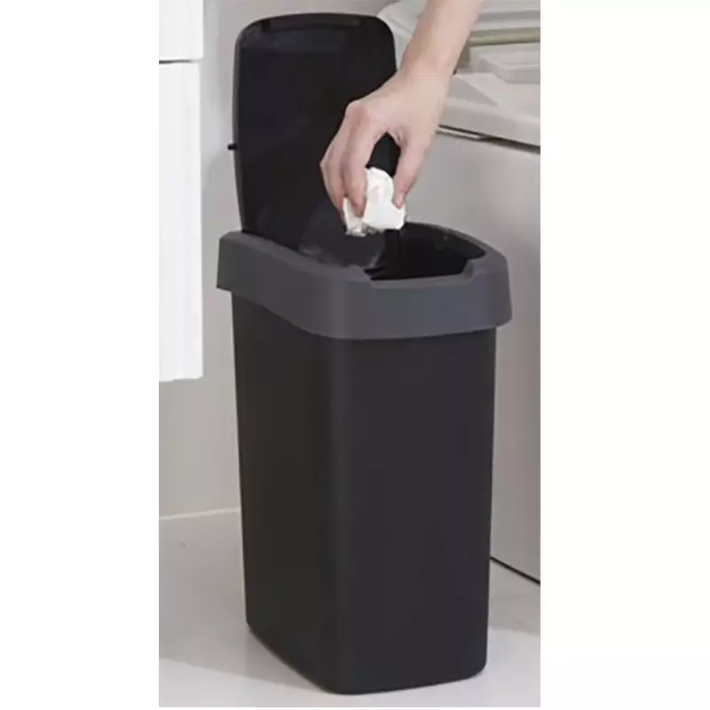 Tämä 10 litran roskakori sopii erinomaisesti pieneen tilaan, kuten keittiöön, kylpyhuoneeseen tai toimistoon. Kätevä kansi pitää hajut sisällään ja tekee astian käytöstä hygieenisempää. Tyylikäs musta väri ja moderni muotoilu sulautuvat helposti eri sisustuksiin. Kestävä PP-muovi varmistaa pitkän käyttöiän ja helpon puhdistettavuuden.