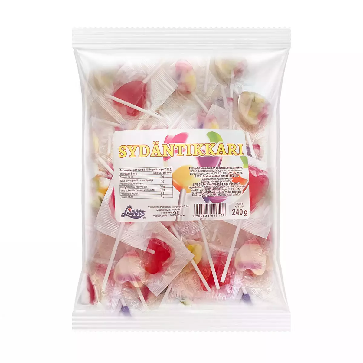 Sydäntikkari tikkarisekoitus sisältää erilaisia ja makuisia sydämenmuotoisia tikkareita. Värikäs ja iloinen valikoima sopii hyvin esimerkiksi karkkikulhoon, juhlapöytään ja jaettavaksi eri tilaisuuksissa. Tikkarit ovat yksittäispakattuja, joten ne on helppo jakaa ja säilyttää. Reilu 240 gramman pussi tarjoaa monipuolisen sekoituksen eri makuja ja muotoja samaan pakkaukseen.