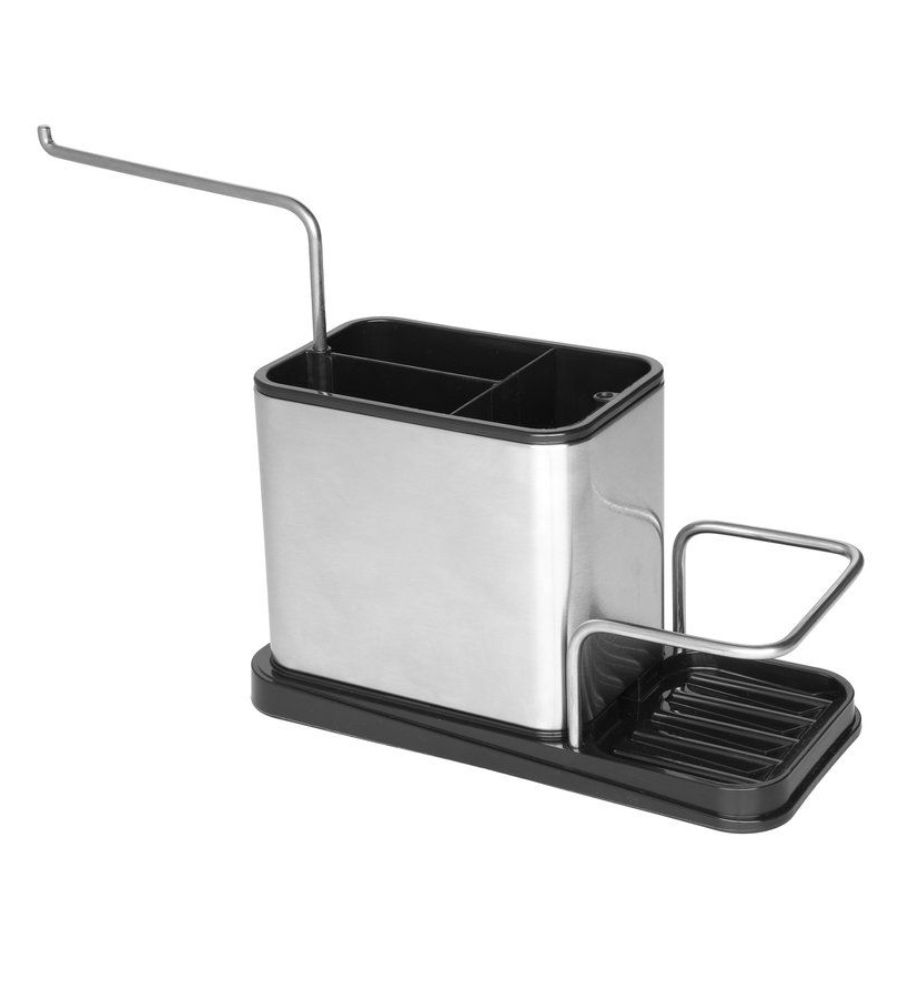 Harjateline jossa kolme lokeroa, joihin voi laittaa tiskiharjat, pulloharjat, astianpesusienet jne. Tai lokeroita voi käyttää vaikka aterimien kuivatukseen. Lisäksi paikka tiskiainepullolle sekä kätevä tanko tiskiliinalle. Vesi valuu lokeroiden alta pois ja lokero on helppo irrottaa alustasta puhdistusta varten. Materiaali PP ja ruostumaton teräs.