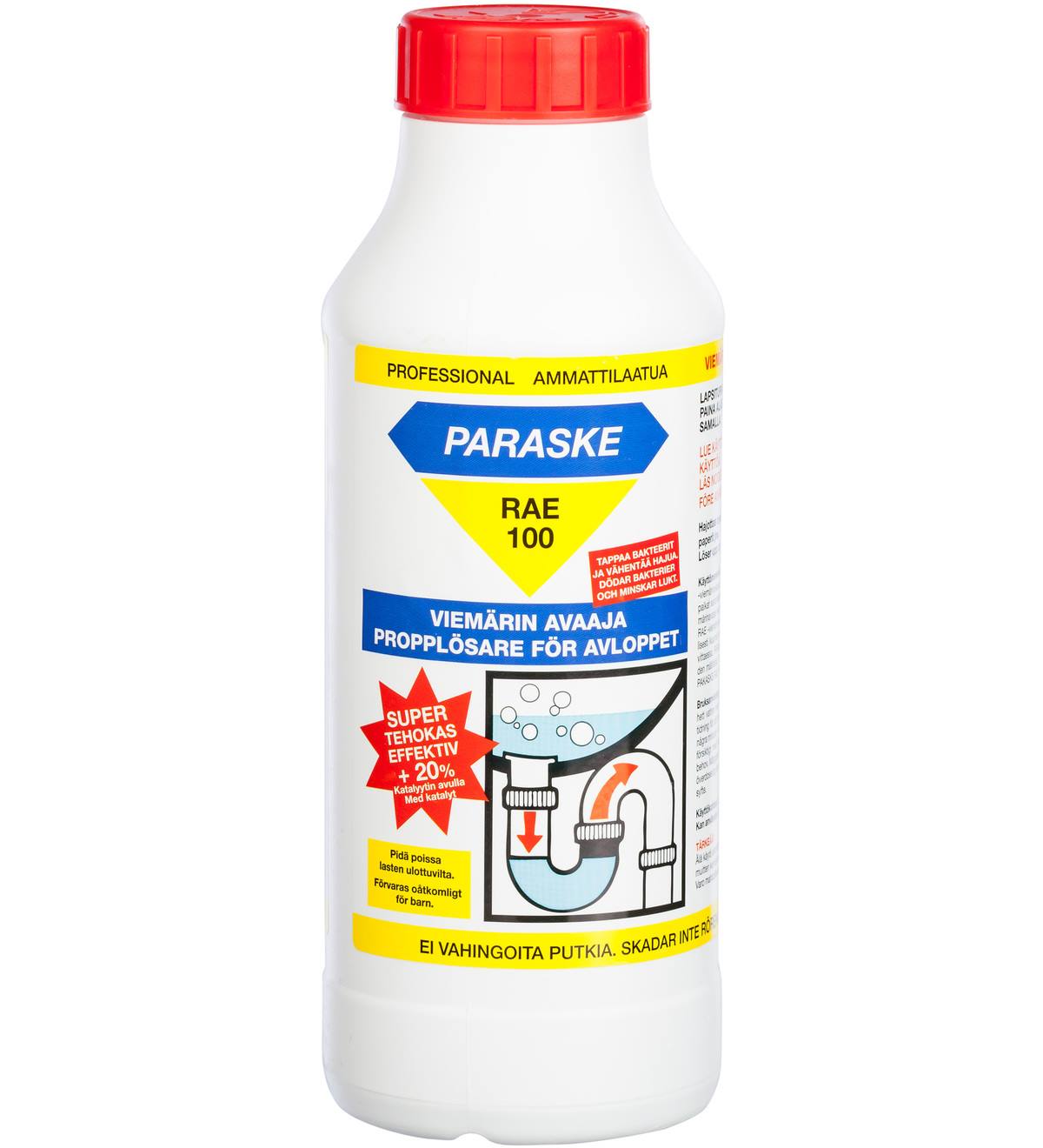 Hajottaa orgaaniset tukokset kuten hiukset, rasvat, saippuat, paperit jne. Käyttökohteita lavuaarit, tiskialtaat, viemärit, lattiakaivot jne. Ei vahingoita putkia. Tappaa bakteerit ja vähentää hajua. Älä käytä alumiinille tai yhdessä muitten kemiallisten aineiden kanssa.
